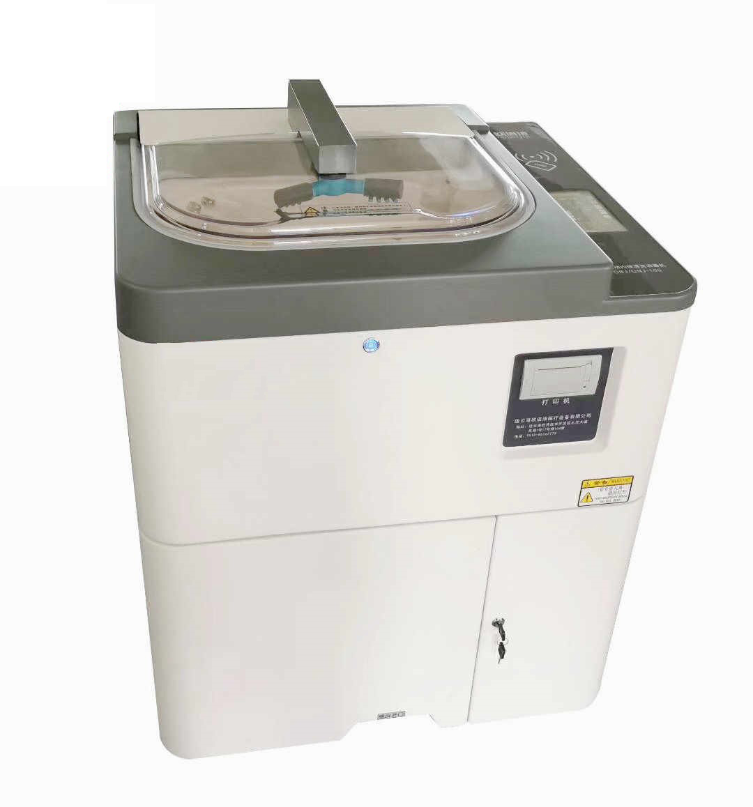 隨著(zhù)內鏡診療技術(shù)的迅速普及和不斷發(fā)展,消化內鏡檢查已成為消化系統疾病診治必不可少的手段。內鏡做為一種侵入體腔內的儀器,所以?xún)如R的材料特殊結構復雜,不能耐高溫和高壓消毒,只能采用一些化學(xué)消毒劑浸泡,使用頻率高往往因清洗消毒時(shí)間不足等原因導致消毒滅菌不徹底而引發(fā)醫院感染的重要環(huán)節之一,為加強內鏡清洗消毒工作,保障醫療質(zhì)量和醫療安全,國家衛生制定了《內鏡清洗消毒技術(shù)操作規范》,所以按照《規范》要求,認真做好內鏡清洗消毒規范管理,所以韻華采用全自動(dòng)內鏡清洗消毒效果,取得良好的社會(huì )效益和經(jīng)濟效益。全自動(dòng)內窺鏡消毒清洗機,由機箱體組成,包括:上蓋,清洗消毒槽,電源開(kāi)關(guān),前控制面板,機箱前門(mén),前門(mén)把手鎖,打印機,冷光源掛架;機箱體上部為清洗消毒槽,左側設有冷光源掛架,右側設有電源開(kāi)關(guān);打印機和前控制面板安裝在機箱前門(mén)上方.本實(shí)用新型采用酸性氧化電位水為消毒液,機箱體選用高強度材料精心加工而成,堅固耐用,不變形;清洗消毒槽采用進(jìn)口仿瓷原料一次注塑成型,表面潔白光亮,耐腐蝕,使用壽命長(cháng);上蓋以透明亞克力板材一次熱壓成形,透光性強,不易變色,發(fā)暗;該機以高壓流動(dòng)水旋轉噴淋和消毒液循環(huán)噴淋浸泡相結合,配合水洗,酶洗,酒精沖洗內管道,吹干等工序自動(dòng)完成對內鏡的清洗消毒。